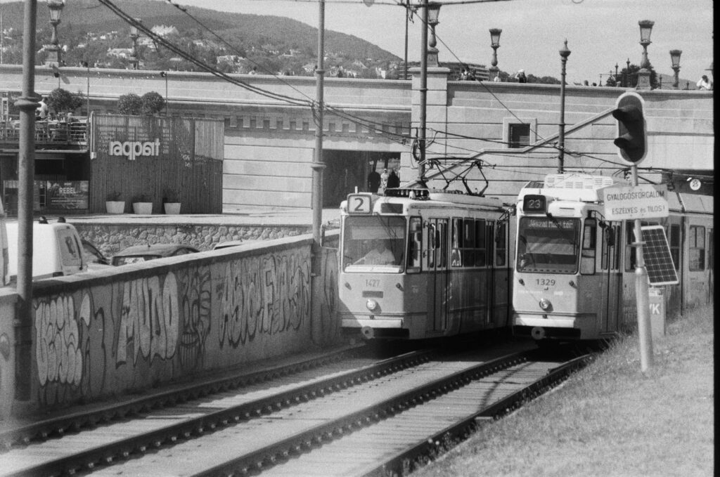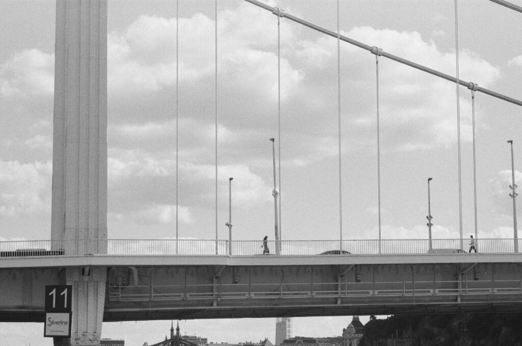 Dühből vásároltam ezt az újabb ISO 100-as tekercset, miután az előző teljesen értékelhetetlen lett. Ki akartam használni a nyári fényárt, sejtve, hogy az idei utolsó, és kipróbálni, milyenek ilyenkor a sötétek 1/500 shutternél. Pedig nem is hiszek benne; vallom, hogy az idő egy burzsoá koncepció, „nem telik, hanem van”, mint a Duna.