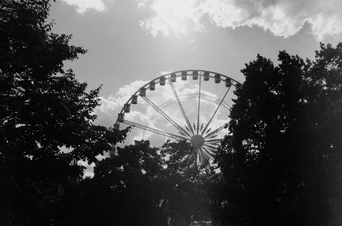 Dühből vásároltam ezt az újabb ISO 100-as tekercset, miután az előző teljesen értékelhetetlen lett. Ki akartam használni a nyári fényárt, sejtve, hogy az idei utolsó, és kipróbálni, milyenek ilyenkor a sötétek 1/500 shutternél. Pedig nem is hiszek benne; vallom, hogy az idő egy burzsoá koncepció, „nem telik, hanem van”, mint a Duna.